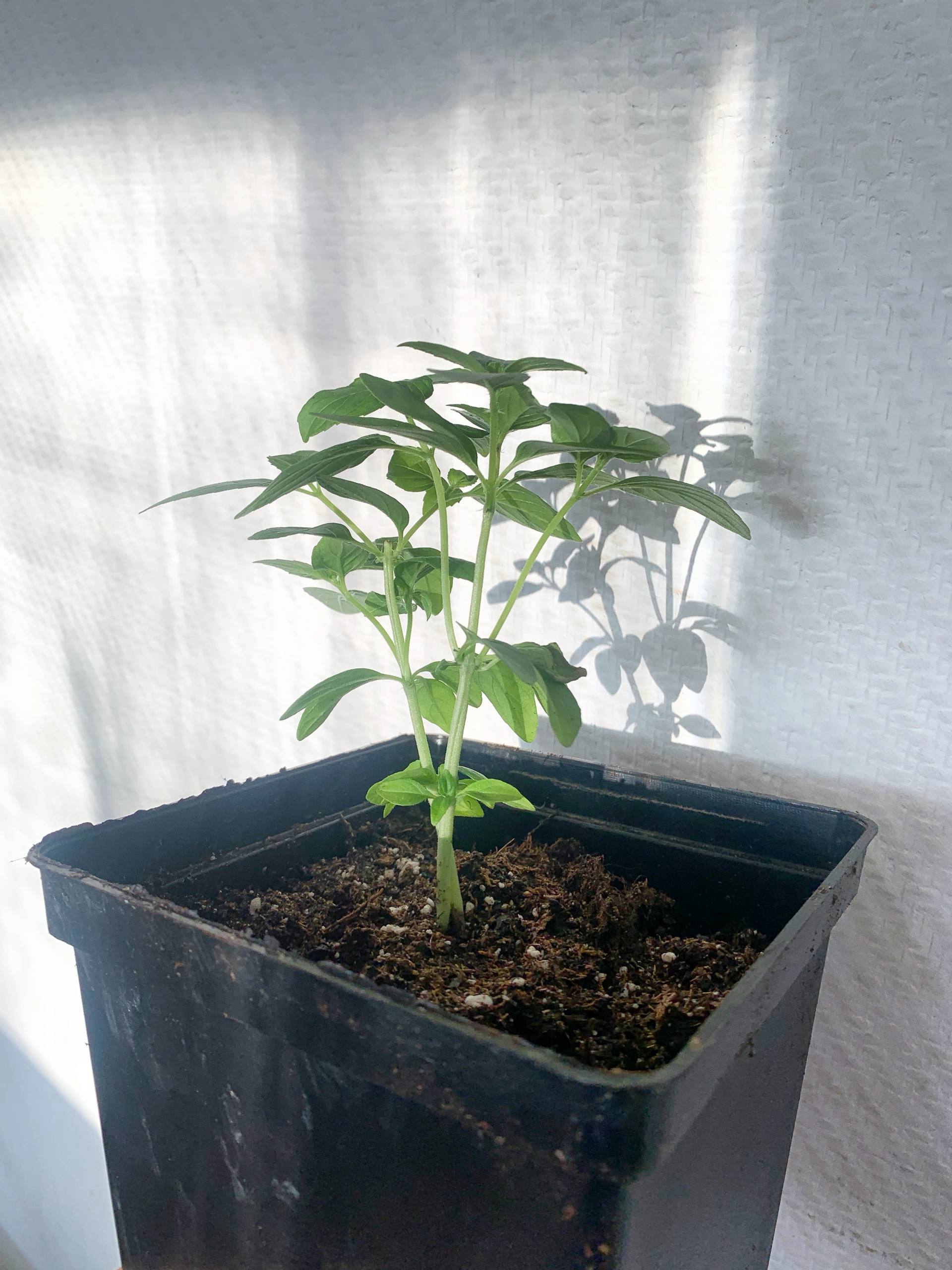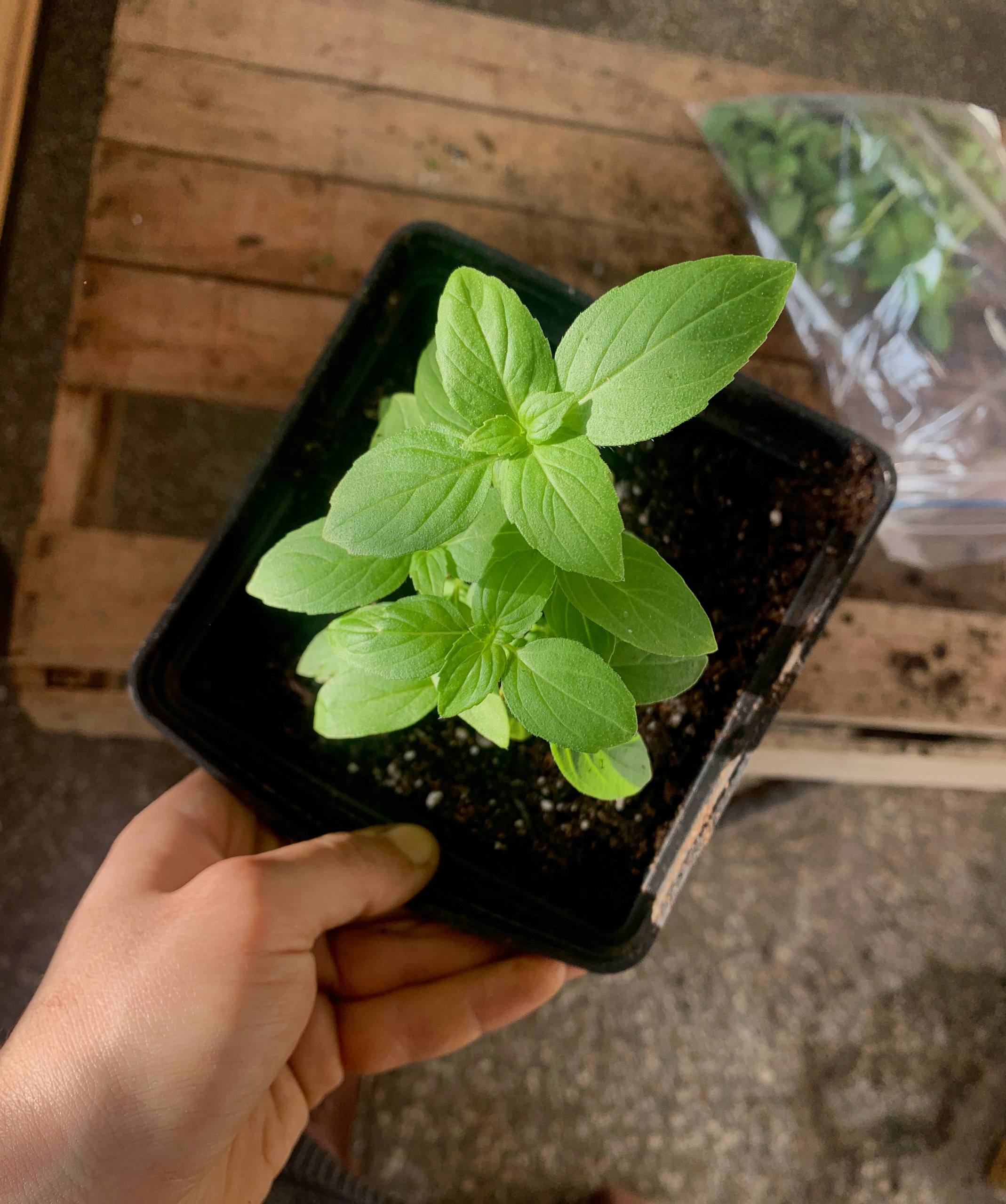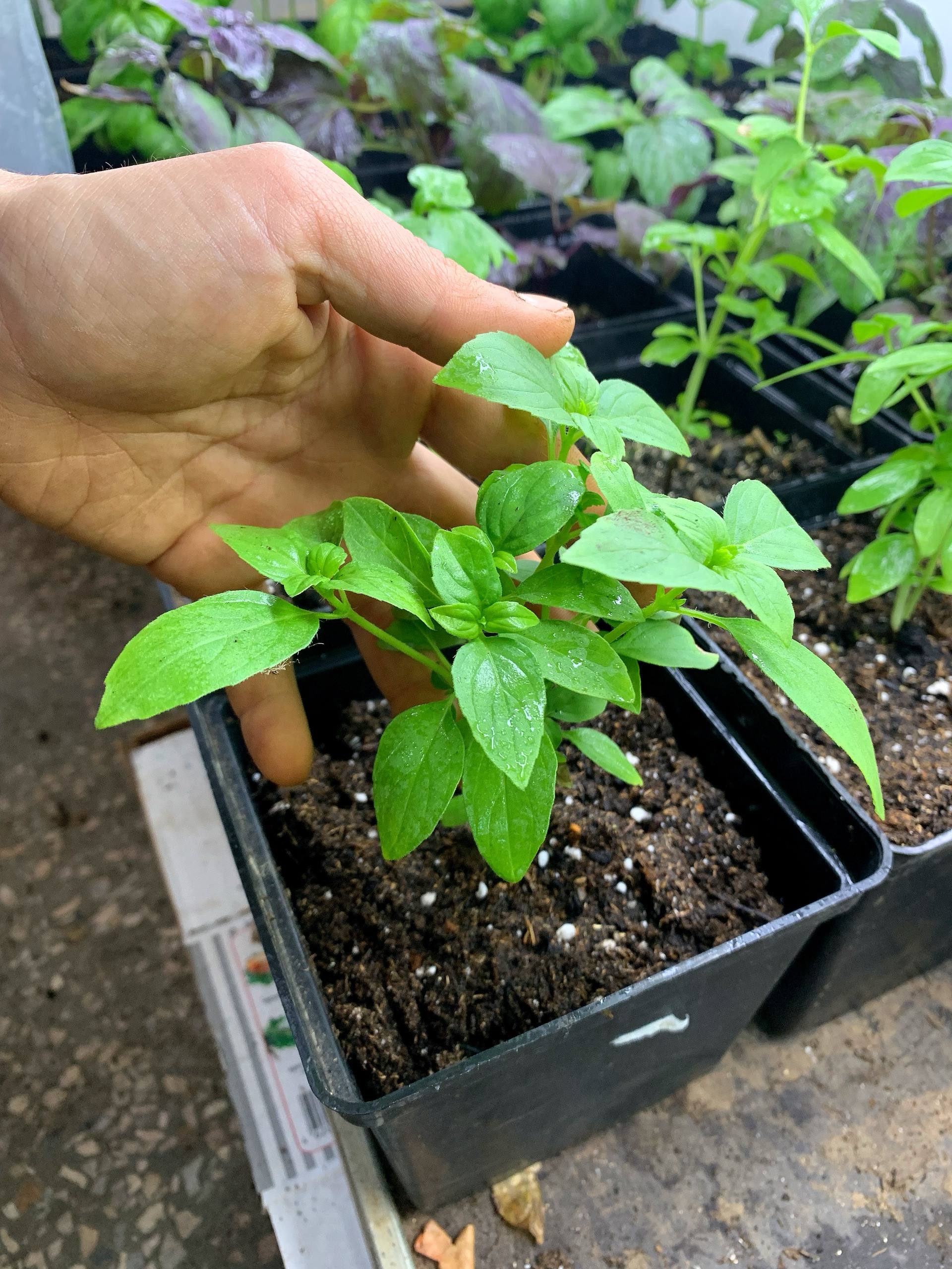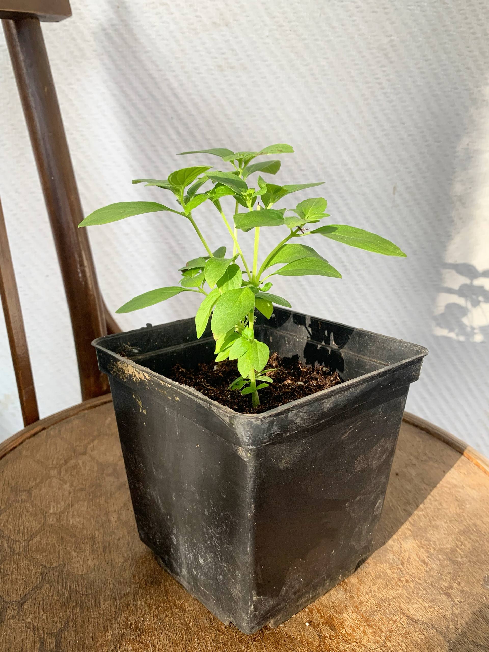 Базилик греческий в горшке, сорт с интенсивным ароматом, небольшой остринкой и мелкими листьями.