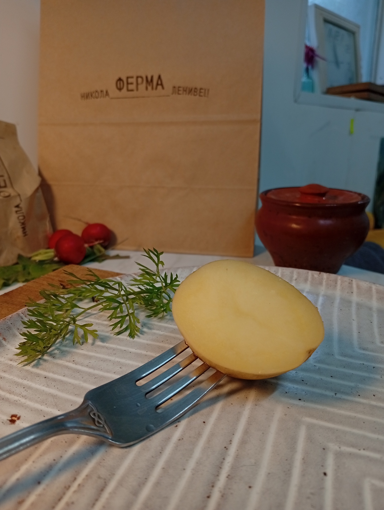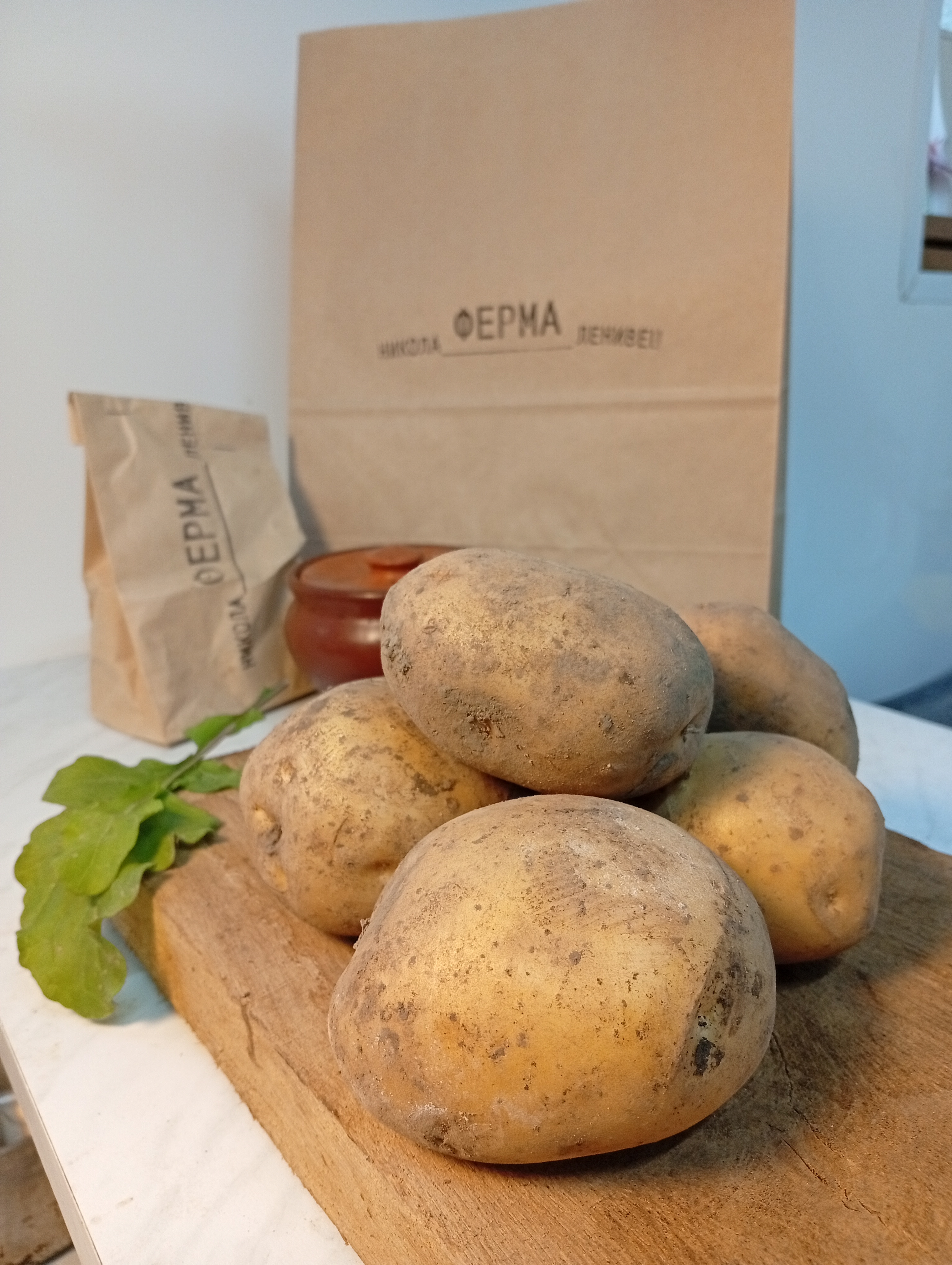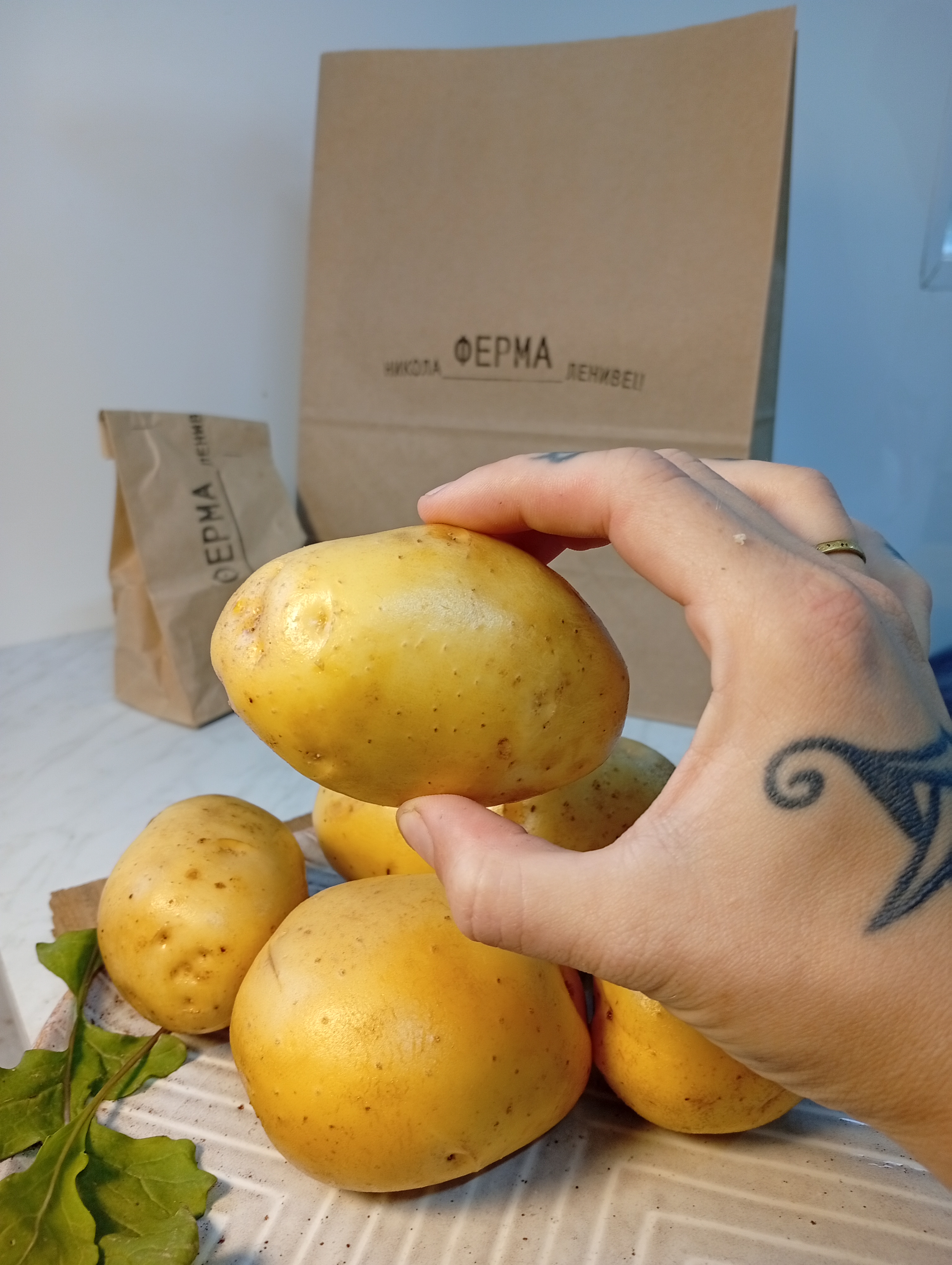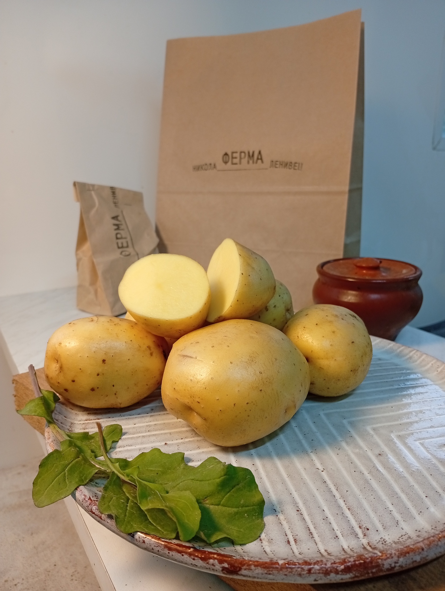Картофель жёлтый сорта Лисана. Сорт создан в Германии традиционными методами и локализован для средней полосы России. Отлично хранится, устойчив к заболеваниям растений и не образует тёмных пятен на клубнях.
