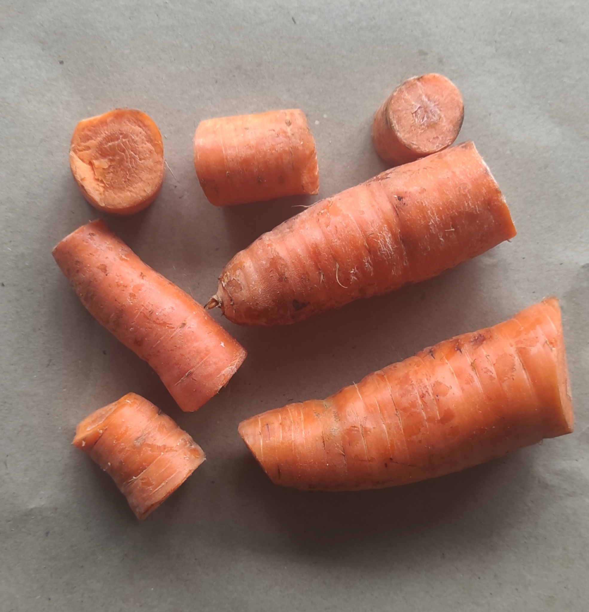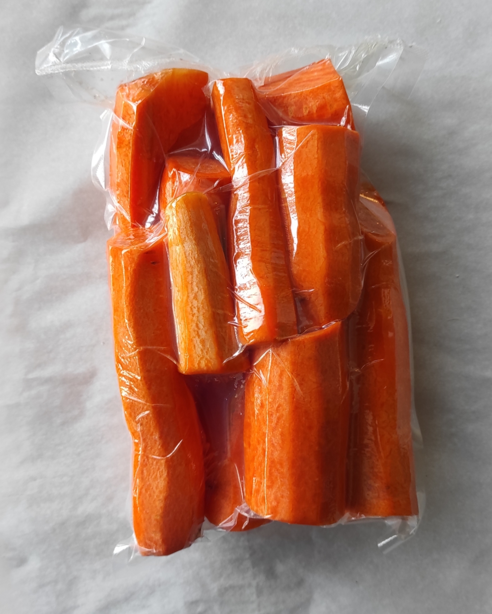 Морковь чищеная и резанная. Мы не только выращиваем без применения химических веществ и удобрений, но и храним без химических стабилизаторов и изменённой газовой среды. Поэтому не всегда морковка хранится до нового урожая. Тогда мы срезаем ставшие некрасивыми участки. Получается очень удобный продукт - мытый, свеже-перебранный и практически безотходный.
