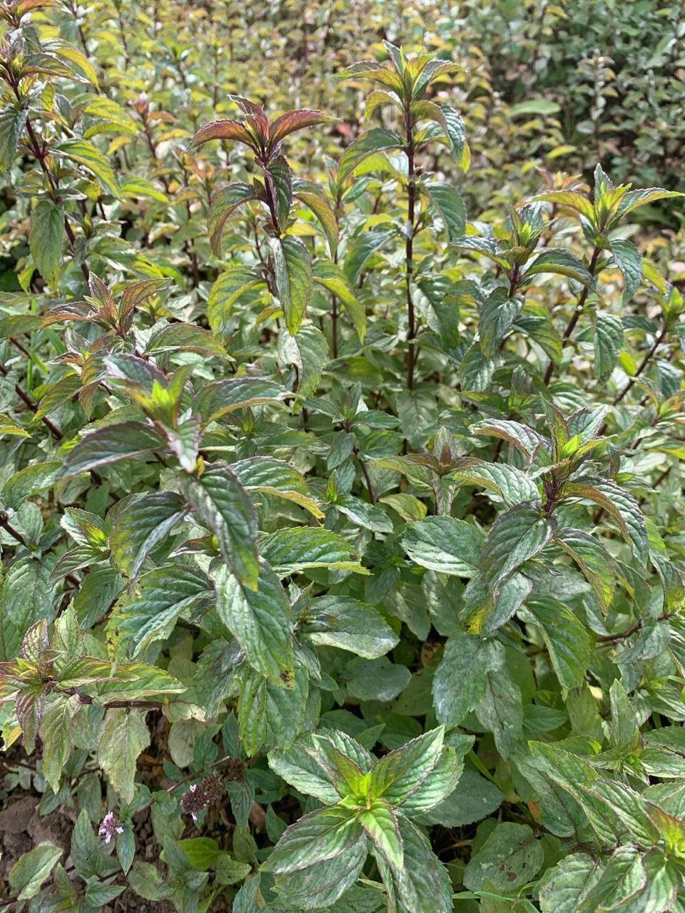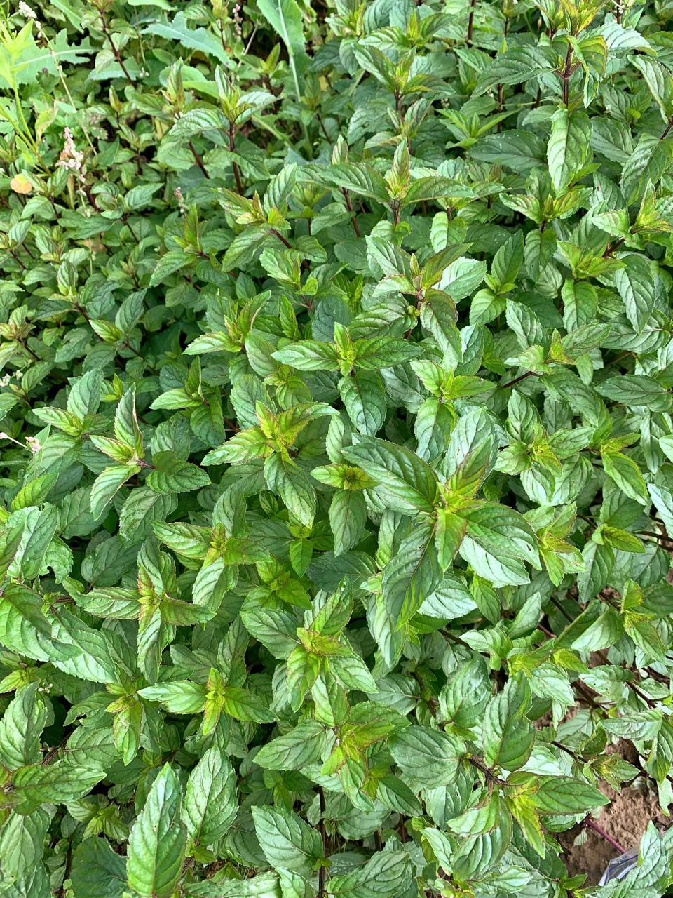 Пучок свежей мяты сорта Шоколадница с приятным ароматом и нежной кислинкой во вкусе. Листья округлые, чуть коричневатые. Выращиваем в открытом грунте и срезаем накануне сборки заказа.