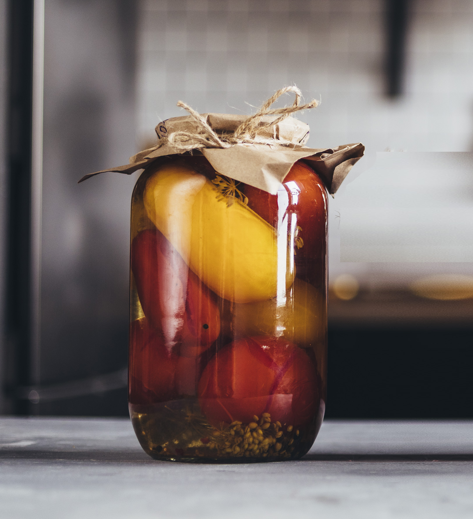 Помидоры маринованные, без излишков уксуса и соли.