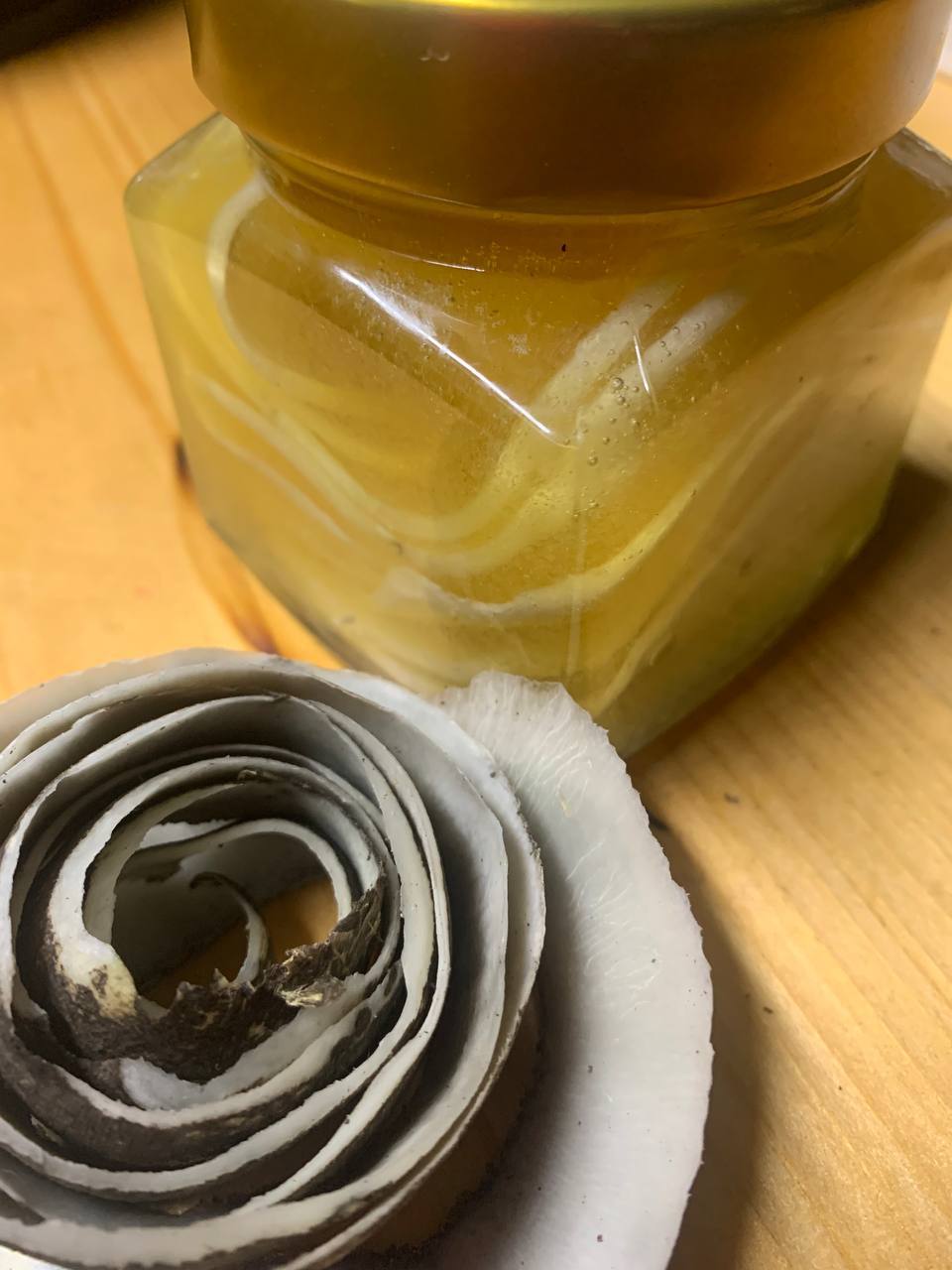 Слайсы чёрной редьки в домашнем меду (разнотравье).