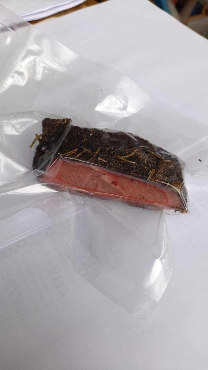 Очень сочный! Мягкий и нежный, ароматный. Насыщенный мясной вкус. Великолепно смотрится в подаче. Можем нарезать слайсами по запросу. Готово к употреблению.